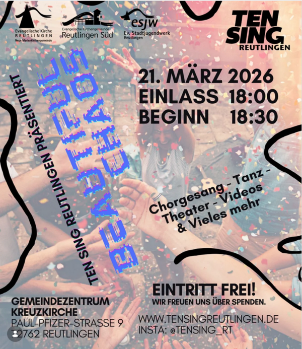 ☞Ten Sing Show: 21.3.2026, 18.30 Uhr, Gemeindezentrum Kreuzkirche